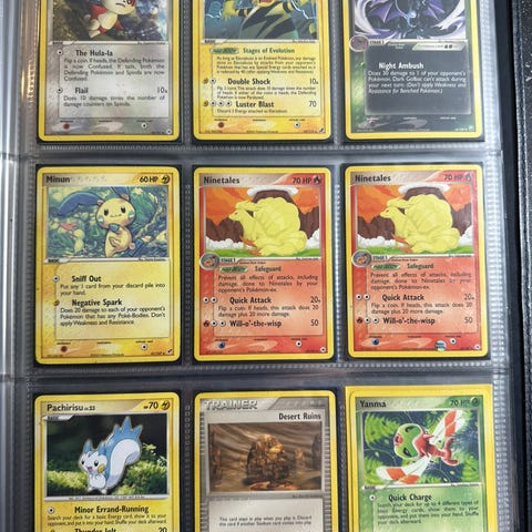 Gammel samling som jeg fant på loftet vurderes solgt. Inneholder flere forskjellige Pokémon-kort av ulike typer, tilstand varierer, men alle har vært i bruk.