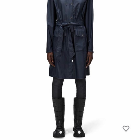Den dobbeltspente fronten, brede slag og et justerbart belte fremhever midjen og gir et skreddersydd uttrykk. Skulderklaffer, stormklaff både foran og bak og ermelinninger med stropper forsterker den ikoniske trenchcoat-looken, mens skrå sidelommer gjør den praktisk til hverdags. Den lett strukturerte bomullen faller pent og gjør jakken perfekt over jeans, dressbukser eller kjole gjennom overgangssesongene.