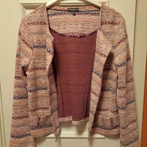 Rosa og hvit dressjakke tilsalgs.