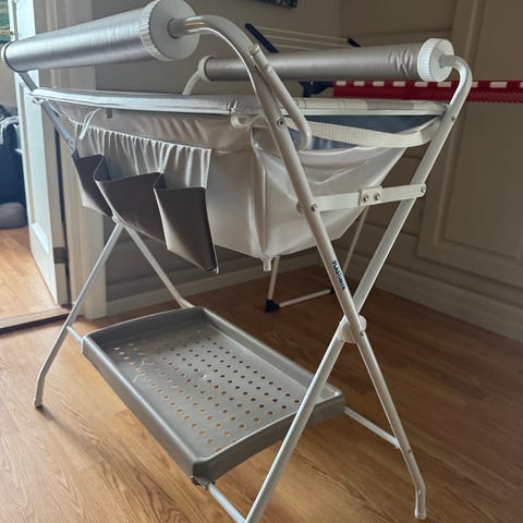 Stellebord til baby. Pent brukt og i god stand. Praktisk med oppbevaringshylle under til bleier og babyutstyr. Stabilt og lett å bruke.