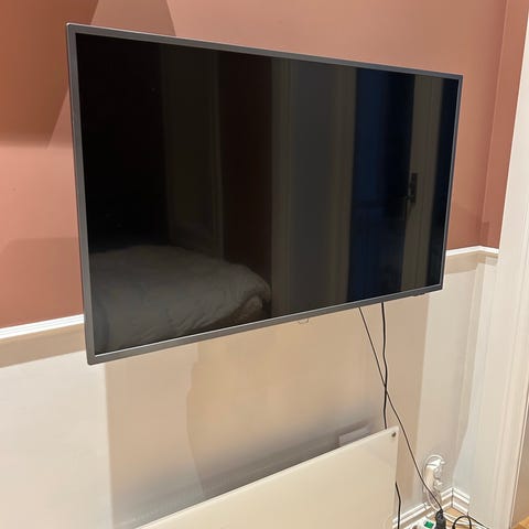 TV-en har en skjermstørrelse på 40 tommer og leveres i svart utførelse. Den har HDMI-innganger og støtte for Dolby Digital Plus, ifølge merkingen på baksiden. Strømforbruket er oppgitt til 36 W (85 W maks). Fjernkontroll fra Philips følger med, som vist på bildene.