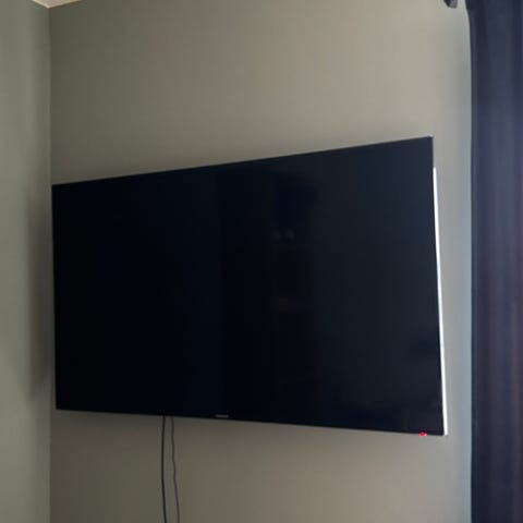 TV-en kan brukes til vanlig TV-titting, tilkobling av eksterne enheter via HDMI og andre tilgjengelige tilkoblinger som fremgår av bakpanelet. Modellen støtter funksjoner og menyer som vises på skjermbildet i annonsen.