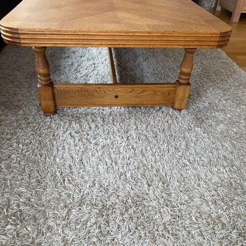 Usikker om bordet er i eik eller valnøtt.