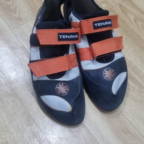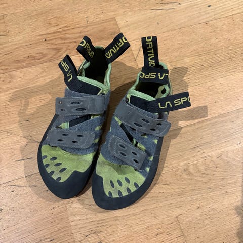 Skoene er godt brukt, men hvis du er nybegynner og leter etter dine første klatresko til en billig pris passer skoene perfekt, de er str 42,5