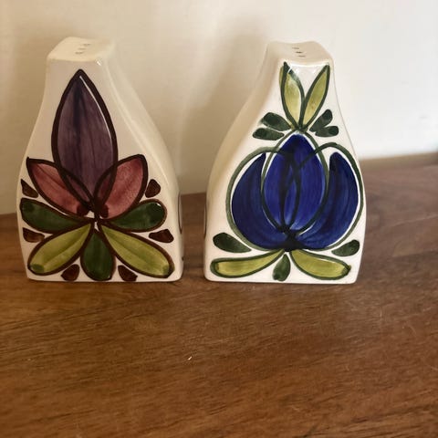 Elegant kryddersett fra Italia. Håndmalt dekor. Salt & Pepper + Olje-karaffel