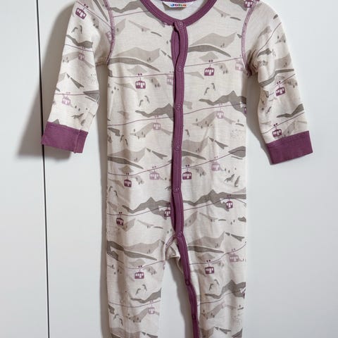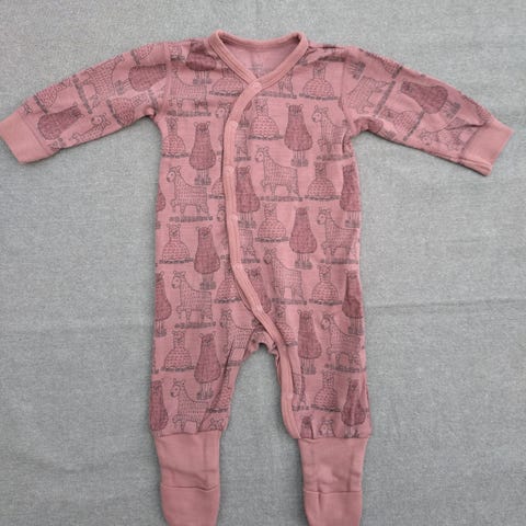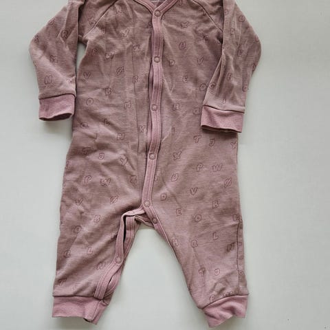 Deilig, myk pysj i 50 % ull, 45 % bambusviskose og 5 % polyamid. Størrelse 68. Godt brukt, normal bruksslitasje uten flekker eller hull. Fra Hust and claire.