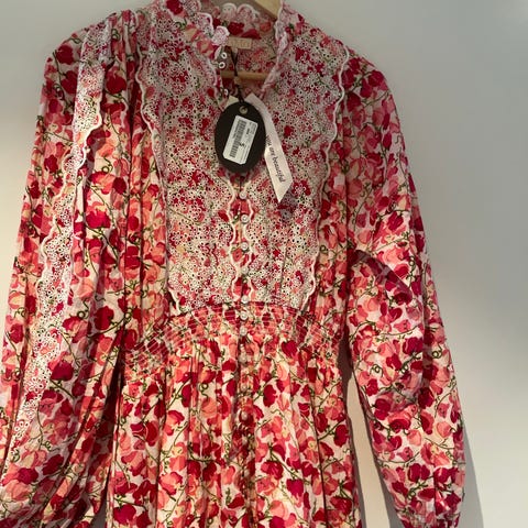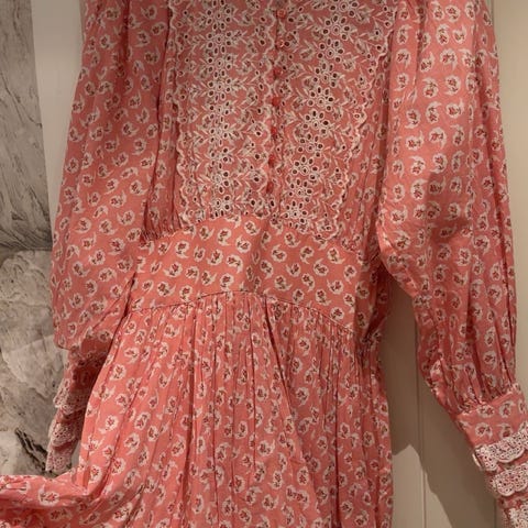 Bytimo linen button down dress i strl L selges, da den ikke blir brukt. Ingen bruksmerker. Mønsteret er ikke i salg lengre, siste bilde er kun for å vise fasongen. Pene broderier, flatterende fasong, lengde til rett over knærne. Noe liten i størrelsen. 55% lin, 45% bomull. Nypris 3.999,-