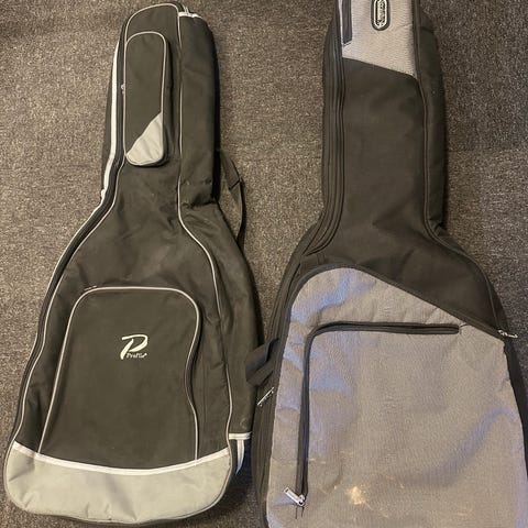 (AI beskrivelse) Premium Protection gitarbag i svart tekstil. Myk, polstret innside for å beskytte gitaren under transport og lagring. Utvendig stor lomme med glidelås for tilbehør som kabler, noter eller stemmeapparat. Bærehåndtak og skulderreim for enkel bæring. Passer til standard gitarstørrelse (se mål eller form på bildene for å vurdere passform til egen gitar).
