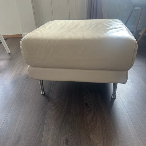 Denne cognacfargede puffen fra Bolia er hos å sitte på, og pent brukt. Noen merker i skinnet. Må hentes.