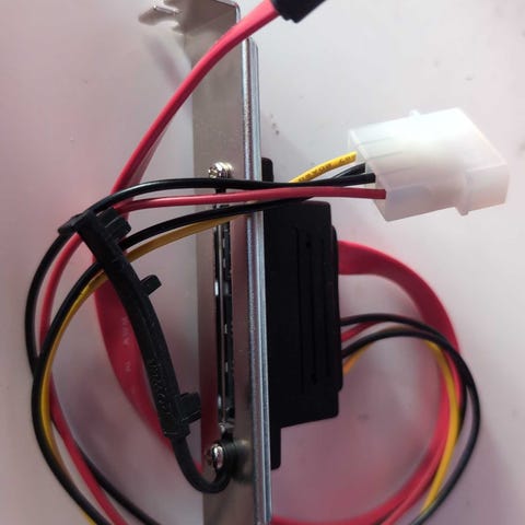 Selger en brakett / slot-plate for stasjonær PC med 2 x eSATA og strømtilkobling.