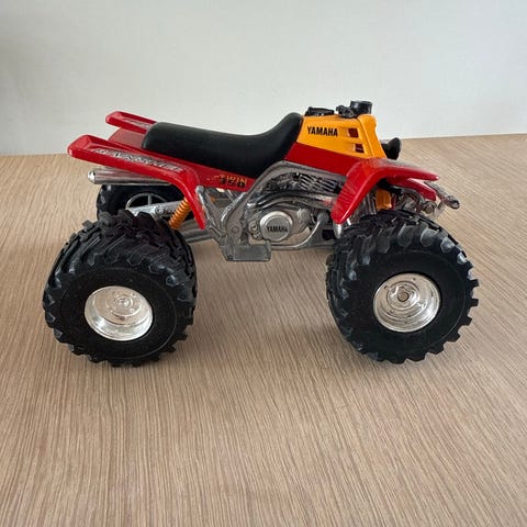 lekebil monstertruck i plast. Bilen er hovedsakelig svart og grå med oransje hjul og sølvfargede detaljer. Den har store terrenghjul som gjør den egnet som robust leke på gulv og andre jevne underlag. Størrelsen fremgår av bildene med målebånd ved siden av bilen. Passer som lekebil for barn som liker biler og kjøretøy.