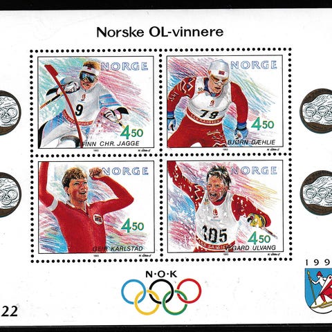 80% rabatt: Norge 1991 OL-vinnere III Blokk 15 (Postfrisk)