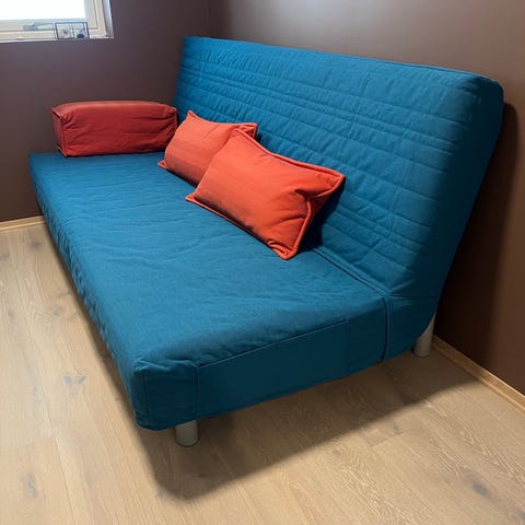 Den har en liten flerre i trekket på baksiden av ryggstøtten. Denne er verken synlig dersom man sovesofaen brukes som sofa eller seng, men greit å være klar over.