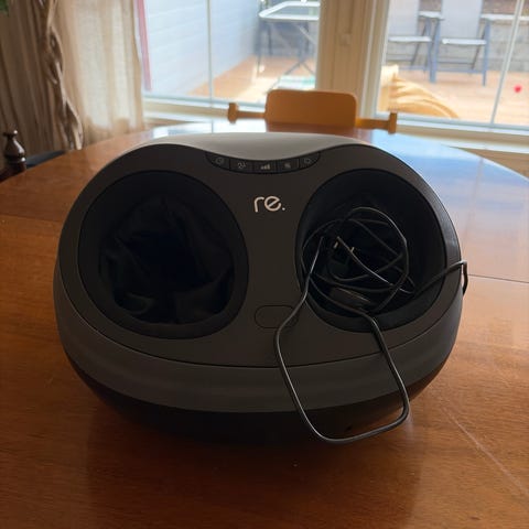 Enheten er laget for massasje av føtter. Føttene plasseres i de polstrede åpningene på toppen, og massasjen styres via knappene på kontrollpanelet. Modellen har flere innstillinger for intensitet og massasjeprogram, som velges direkte på enheten.