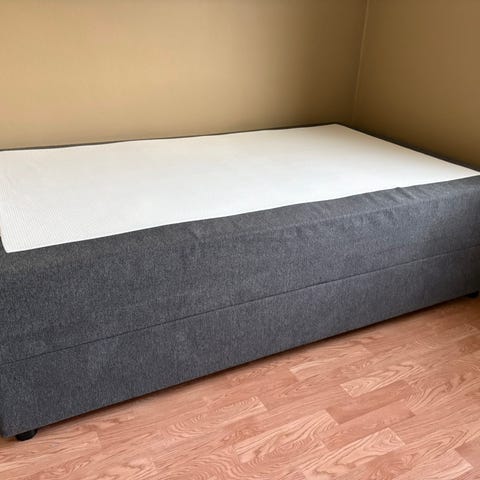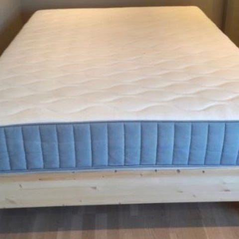 Jensen Ambassador seng med overmadrass. Sengen har en elektrisk installasjon som gjør at en kan heve og senke bein og overkropp/rygg. Veldig god seng.