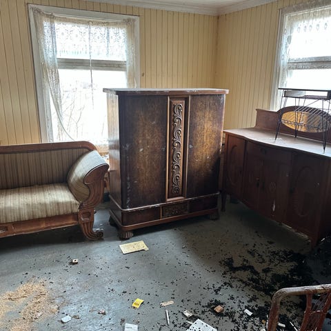 Ser ingen store skader i treverk, men ingen garanti.