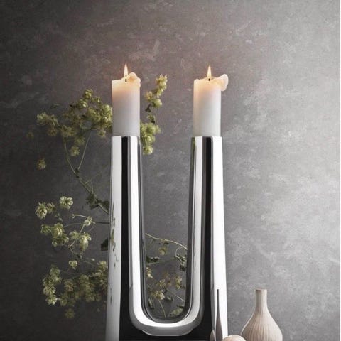 Georg Jensen vase i metall. Vasen har en blank, metallisk overflate og en rund fot som gir god stabilitet. Formen gjør den egnet til både snittblomster og grønne planter, og den kan brukes som borddekorasjon eller stående på hylle eller kommode i ulike rom i hjemmet.