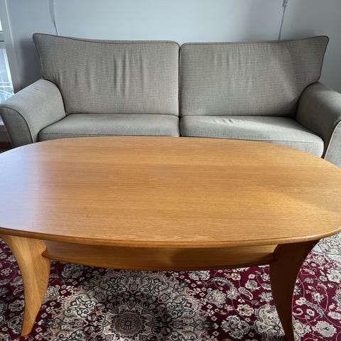 Til salgs også et flott palisander salongbord fra Rasmus Solberg Cabinetmaker med nydelige detaljer i treverket.