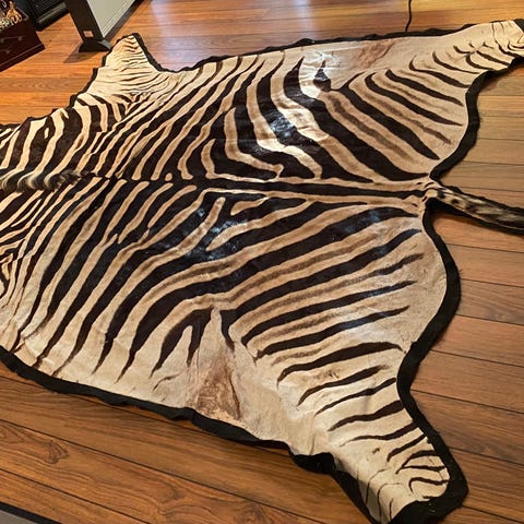 Ekte Afrikansk sebraskinn selges. Det har hengt på vegg det meste av tiden, men i det siste brukt som gulv teppe. Et skikkelig statement i interiøret. Det er ikke slitt, og ikke gått på noe særlig så det er helt pent i pelsen.