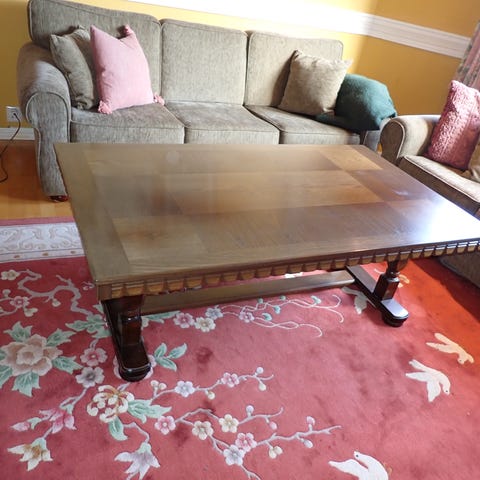 Selger et veldig fint og robust antikt salongbord i massivt tre. Det har praktiske ileggsplater 2 x 23 cm slik at bordet kan utvides. Antar det er fra 50-tallet.