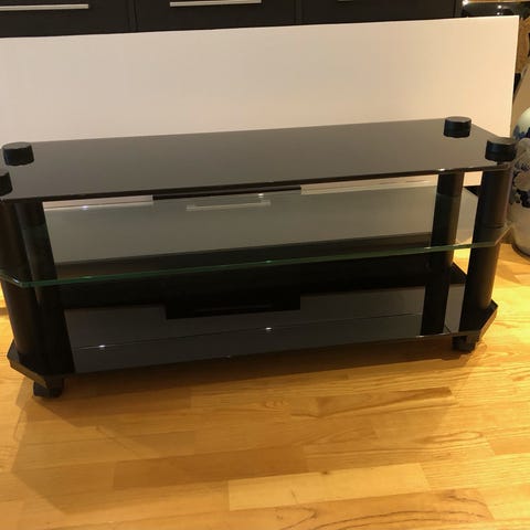 Super fin tv-benk i glass, må hentes på grünerløkka før 1.April. To hyller og utgang til ledninger.