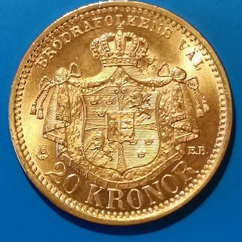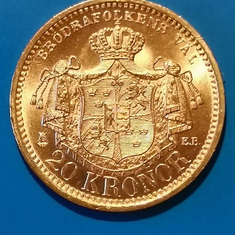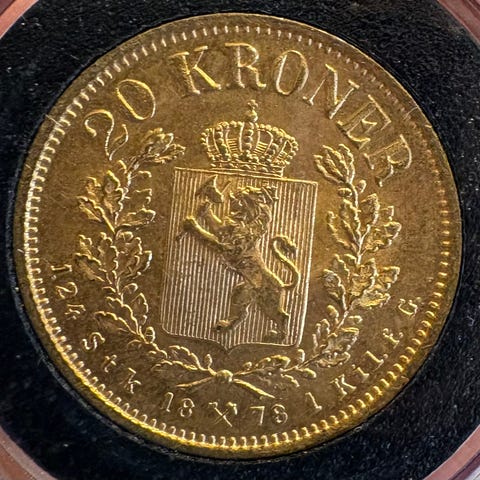Flott Norsk 20 kroning, 1879, Oscar II, Norges o Sver Konge.