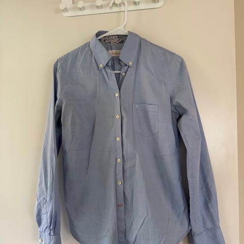 Den har dessverre fått et lite hull foran ved armen. Dette er lett å sy for den som kan litt enkelt håndarbeid, og ellers er skjorten i veldig god stand.