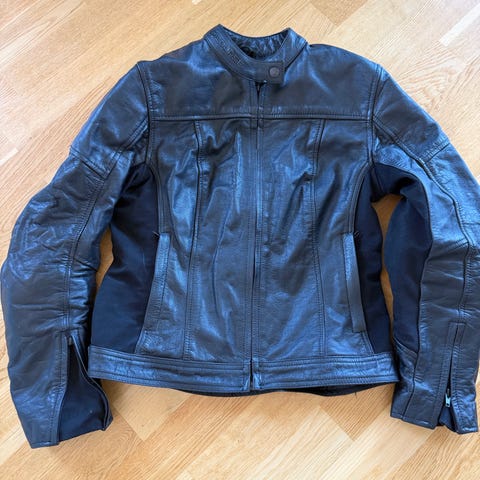 Jakken er pent brukt og fremstår i god stand. Solid skinn med gode glidelåser og justering i livet.