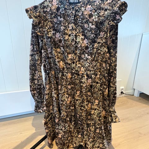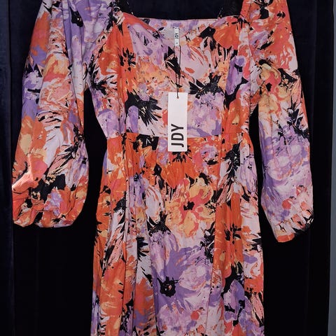 Kjole fra JDY. Knapper i front og belte slik at man kan regulere passformen. Ikke synlig brukt. Lett og fin kvalitet. 100% polyester