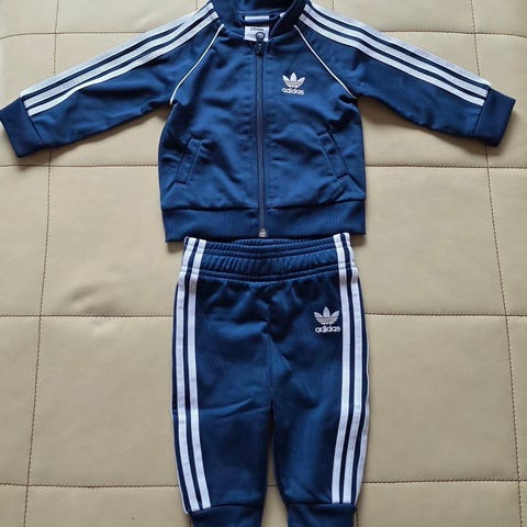 Selger en veldig fresh Adidas joggedress / tracksuit i str. 68 (3-6 mnd). Joggedressen er burgunder i fargen. Svært lite brukt og fremstår som ny.