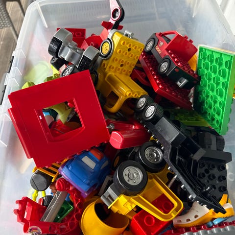 Lego Duplo Cars kjøretøy og fly figurer. Pakken inneholder flere Duplo-kjøretøy, blant annet biler og fly med trykte ansikter. Delene er store og enkle å håndtere for små barn, og kan kombineres med andre Lego Duplo-sett. Plastfigurer med Duplo-klosser på toppen som gjør det mulig å bygge videre eller bruke dem i rollelek på byggeplater og sammen med andre Duplo-elementer.