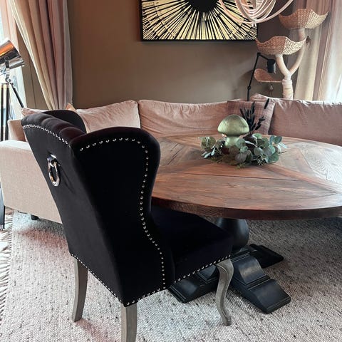 Flott og solid spisebord i sort heltre kjøpt fra Classic Living selges sammen med 8 komfortable stoler i sort velour. Et elegant og stilrent spisebordsett som passer perfekt til både hverdagsbruk og når man har gjester.
