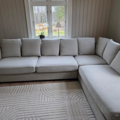 Romslig og komfortabel Bohus Hedy hjørnesofa i lys grå (Paros Light Grey). Pent brukt og i god stand — selges fordi vi har flyttet og bestillt ny sofa som har mål som passer til stua.