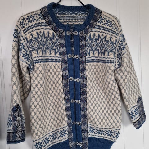 Selger en nydelig håndlaget lusekofte I veldig fin stand. Strikket I 100% ull så den er både varm, slitesterk og behagelig å bruke. Sende gjerne melding ved interrese eller spørsmål