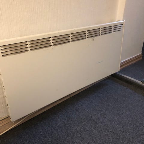 Panelovn i hvit farge. Veggmontert modell med luftespalter øverst for varmeutslipp. Egnet for oppvarming av innendørs rom, for eksempel stue, soverom eller kontor. Strømtilkobling via kabel. Effekt og øvrige tekniske spesifikasjoner er ikke oppgitt.