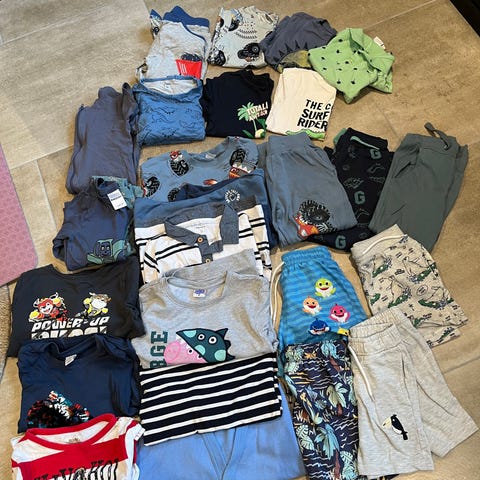 Klespakke med bukser, skjorter og gensere