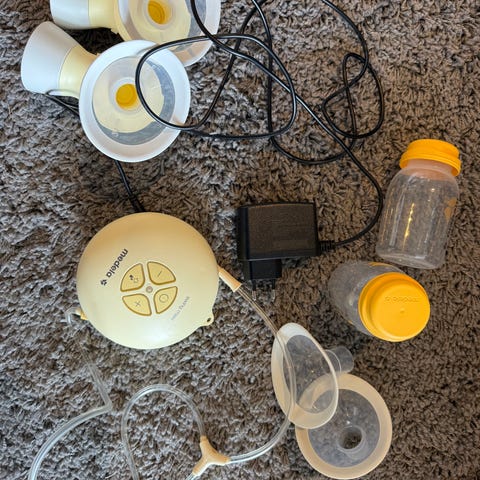selger en pakke med beemoo dobbel elektrisk brystpumpe med ekstra tilbehør.