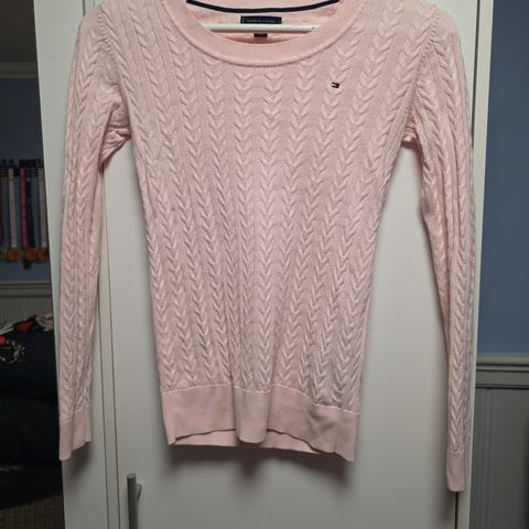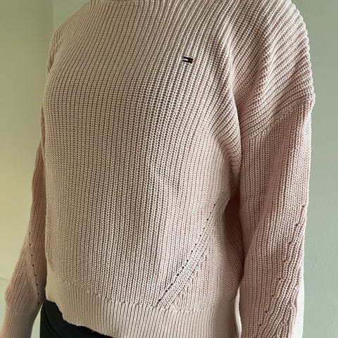 Tommy Hilfiger genser for dame i størrelse XXS. Genseren er ribbestrikket i bomull og har lang erm. Flerfarget design med mørk blå, rød og lys stripe med Tommy Hilfiger-logo foran. Halv glidelås i halsen og tettsittende passform. Passer til hverdagsbruk og kan kombineres med både bukser og skjørt.