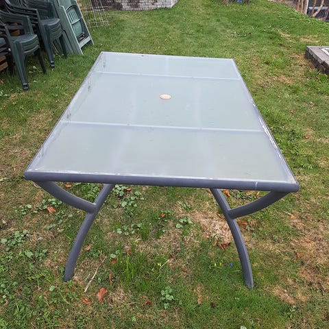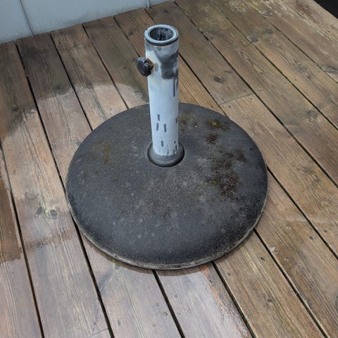 Parasoll i grå farge. Passer til bruk på terrasse eller balkong for å gi skygge