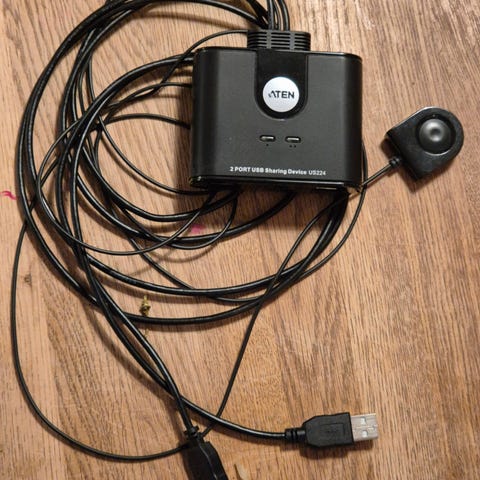 USB-hub tilleggsutstyr for PC. Enheten har flere USB-porter og tilkoblingskabel med USB-plugg. Utformet som et kompakt bordtilbehør med justerbar arm/feste. Kan brukes som ekstra tilkoblingspunkt for USB-enheter til datamaskin eller annet kompatibelt utstyr. Farge hovedsakelig svart med lyse detaljer og blå kabel.