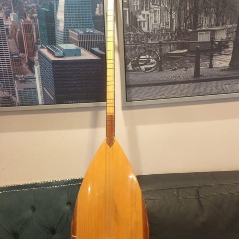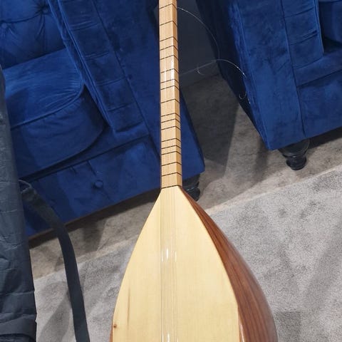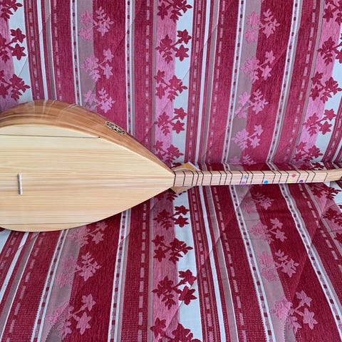 Saz langhals baglama strengeinstrument i naturfarget tre. Kroppen er pæreformet med mørk lakkert bakside og lys topp i tre. Instrumentet har lang hals med bånd og trestemmer. Egnet til tradisjonell tyrkisk og anatolsk folkemusikk, samt annen akustisk musikk der man ønsker klangen fra en baglama. Kan spilles både med plekter og med fingre.