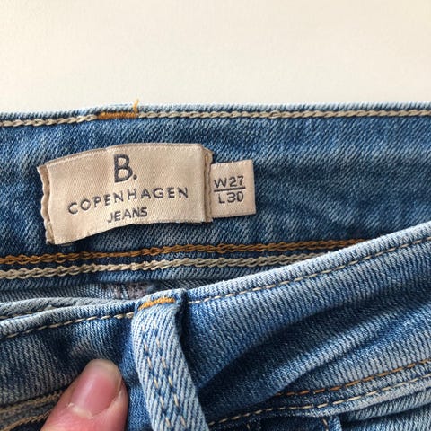 Selger et par jeans fra Les Coyotes de Paris i størrelse 27. Splitt nederst på bena. Buksen er kun brukt en gang og fremstår som ny.