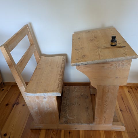 Fin og solid gammel skolepult selges grunnet plassmangel.