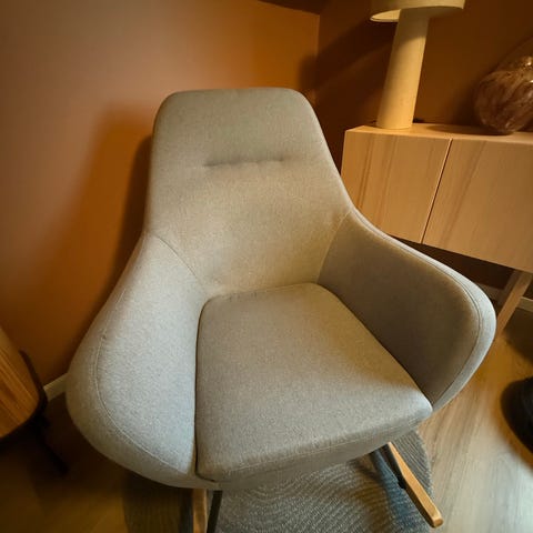 Gyngestol 'Nebel' fra Jysk selges. Ny pris 1899kr, selges for 500kr. Brukt som ammestol, selges da den ikke brukes mer.
