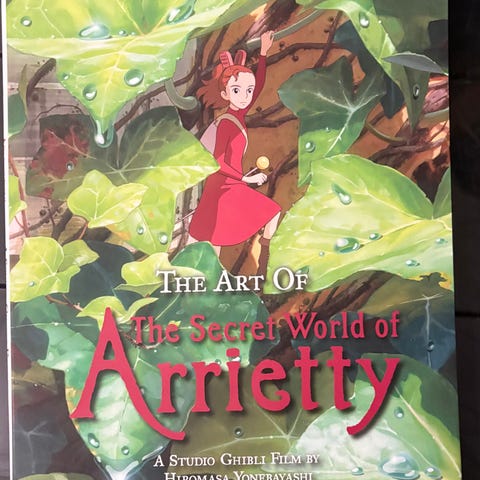 Illustrert oppslagsverk om Studio Ghiblis filmer og produksjoner, med tekst og bilder fra ulike animasjonsprosjekter. Inneholder informasjon om filmer, karakterer, temaer og produksjonsdetaljer, presentert i helsides oppslag med både tekst og fargeillustrasjoner.