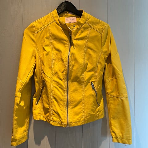 Zara jakke for dame i one size. Jakken er beige og laget i fuskeskinn. Den har glidelåslukking foran, to glidelåslommer i siden og krage. Modellen har et kort snitt og er helfôret. Egner seg som ytterjakke i overgangssesonger. I str XS-S