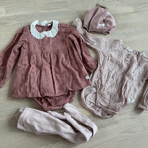 Har flere dresser, jakker og klær til jente. Mye kjoler og sommerklær. Si fra om det er noe du er på utkikk etter da jeg har veldig mye klær liggende til jente mellom str 50 og 74.