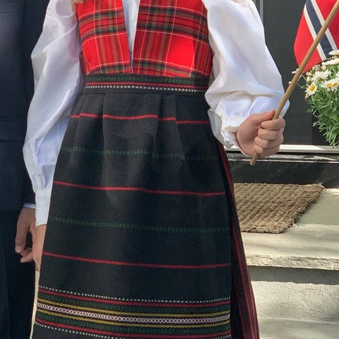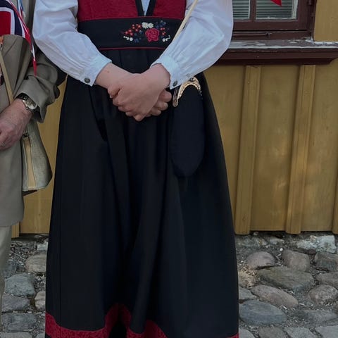 Vakker festdrakt med nydelig vest og fine broderier. 45% ull. Belte med borrelås. Pent brukt, dog er det to knapper som må sys tilbake på stakken (se bilde). Knappene følger med.