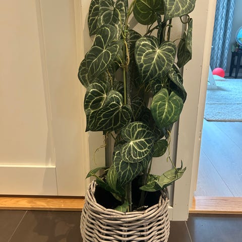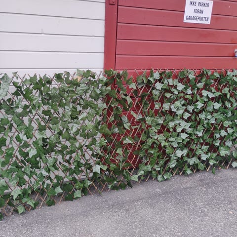 Blomster espalier med kunstige roser. Espalieret består av et rutemønster i tre eller plast med grønne blader og røde og rosa blomster festet på. Kan brukes som dekor på vegg, gjerde eller balkong, både innendørs og utendørs der det er egnet. Gir inntrykk av klatreplanter uten behov for stell eller vanning.