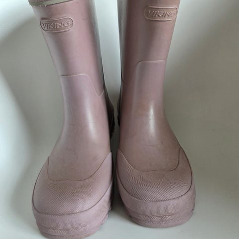 Viking gummistøvler til barn, størrelse 24. Modellen er i rosa farge og passer til jente. Støvlene er laget i vanntett materiale med grov såle for godt grep. Egnet til bruk i regnvær, på lekeplassen og på tur i vått terreng.